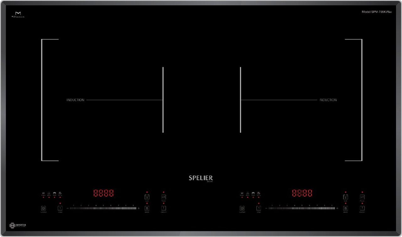 Hẹn giờ giới hạn thời gian hoạt động: Bếp từ Spelier SPM-T99K Plus có khả năng hẹn giờ độc lập từng cho vùng nấu, người dùng có thể dễ dàng thiết lập thời gian đun nấu, bếp sẽ tư động ngắt khi hết thời gian đã được cài đặt