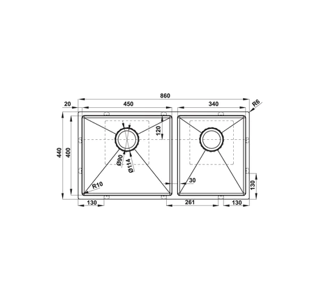 Kích thước chậu: 860D x 440R mm | |