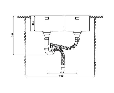 Kích thước cắt đá: + Lắp nổi: 844D x 424R mm + Lắp âm: 820D x 400R mm |