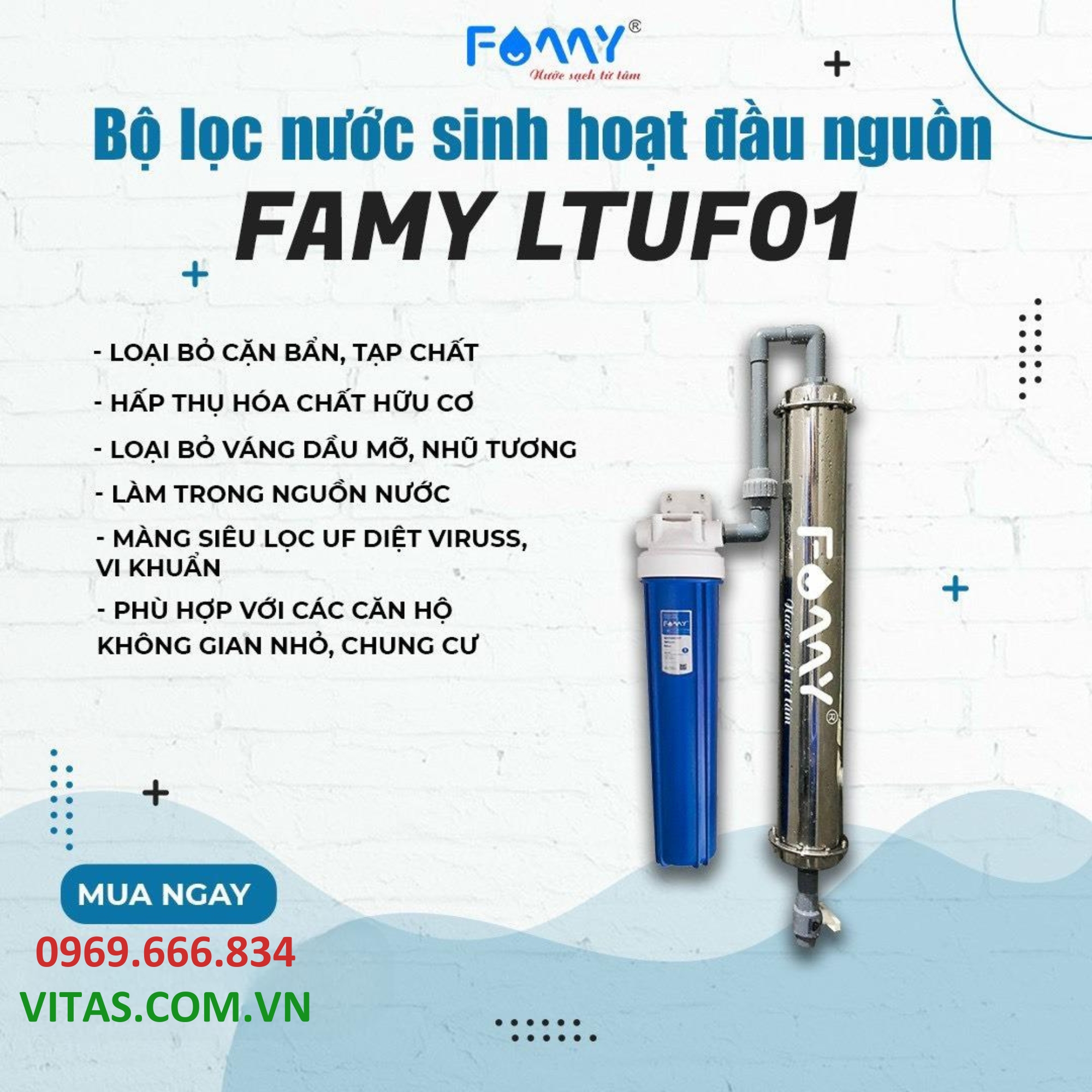 Nắm bắt nhu cầu thiết yếu của người tiêu dùng, thương hiệu Famy đã nghiên cứu và phát triển các mẫu sản phẩm bộ lọc tổng dành riêng cho căn hộ chung cư với những ưu điểm vượt trội. Và bộ lọc nước đầu nguồn chung cư FAMY LTUF01 chính là một trong những phiên bản được nhiều khách hàng quan tâm và lựa chọn nhất.