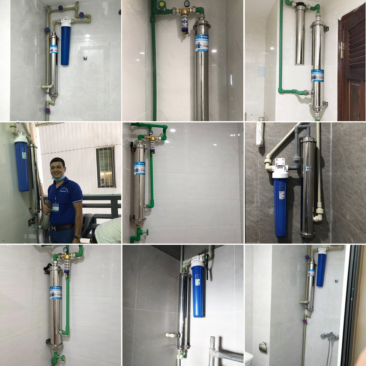 - Đường ống nước cho toàn bộ hệ thống lọc tổng (thường sử dụng loại ống PVC) và đai cố định cột lọc.