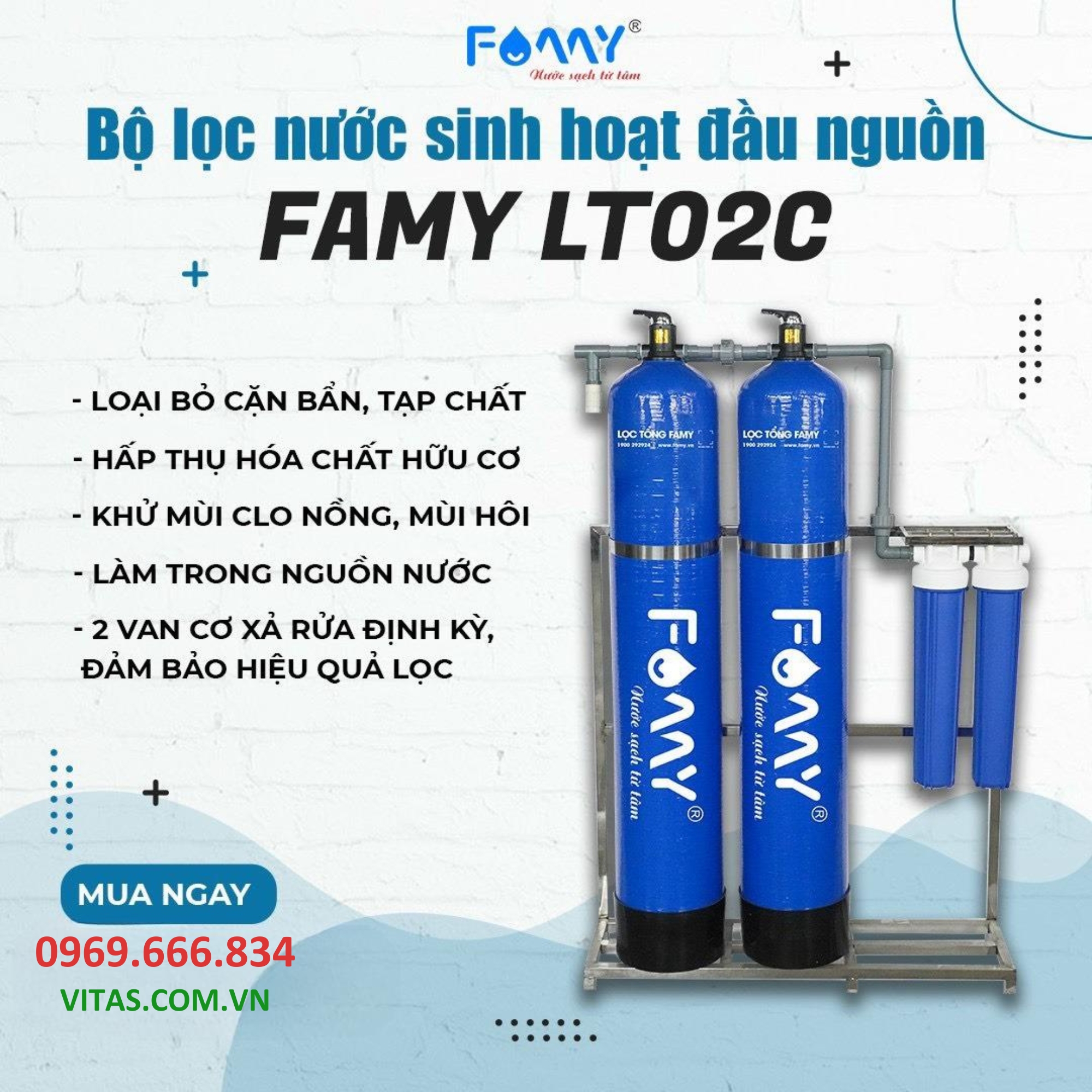 Hệ thống lọc tổng FAMY LT02C là thiết bị chuyên dụng giúp lọc nước sinh hoạt trong gia đình, với khả năng loại bỏ hầu hết các tạp chất có trong nước và bảo vệ an toàn sức khỏe cho người sử dụng.