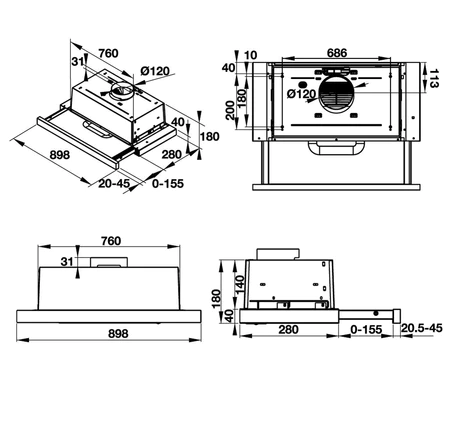 Hệ thống hút xả: tuần hoàn hoặc thông gió. | |