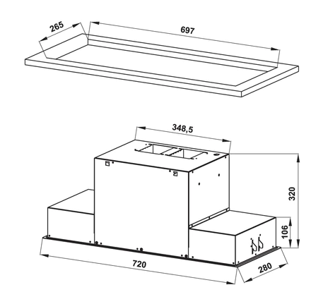 Kích thước hộc cắt: | 697R x 265S mm |