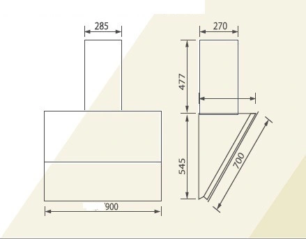 Máy hút mùi kính vát Canzy CZ 90EA có kích thước phổ biến