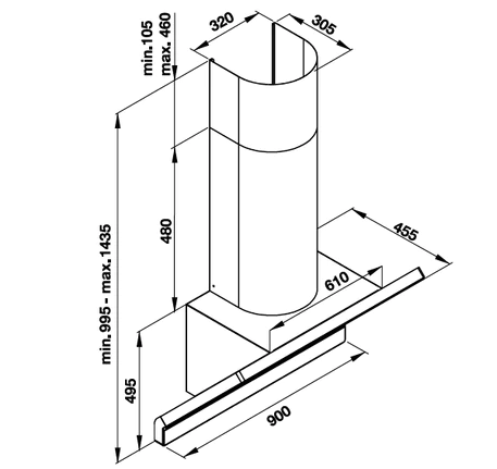 Kích thước sản phẩm: | 900R x 955-1435C x 455S mm |