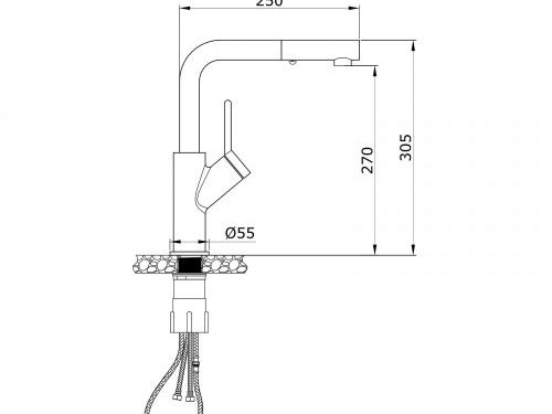 • Đầu vòi kéo dây mở rộng phạm vi làm việc lên đến 76cm