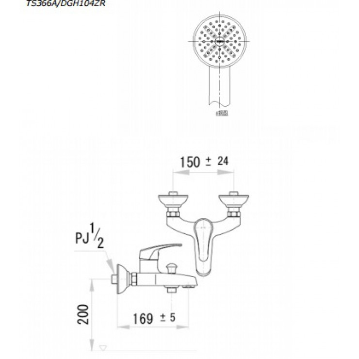 Bản vẽ kỹ thuật vòi sen nóng lạnh TOTO TS366A/DGH104ZR